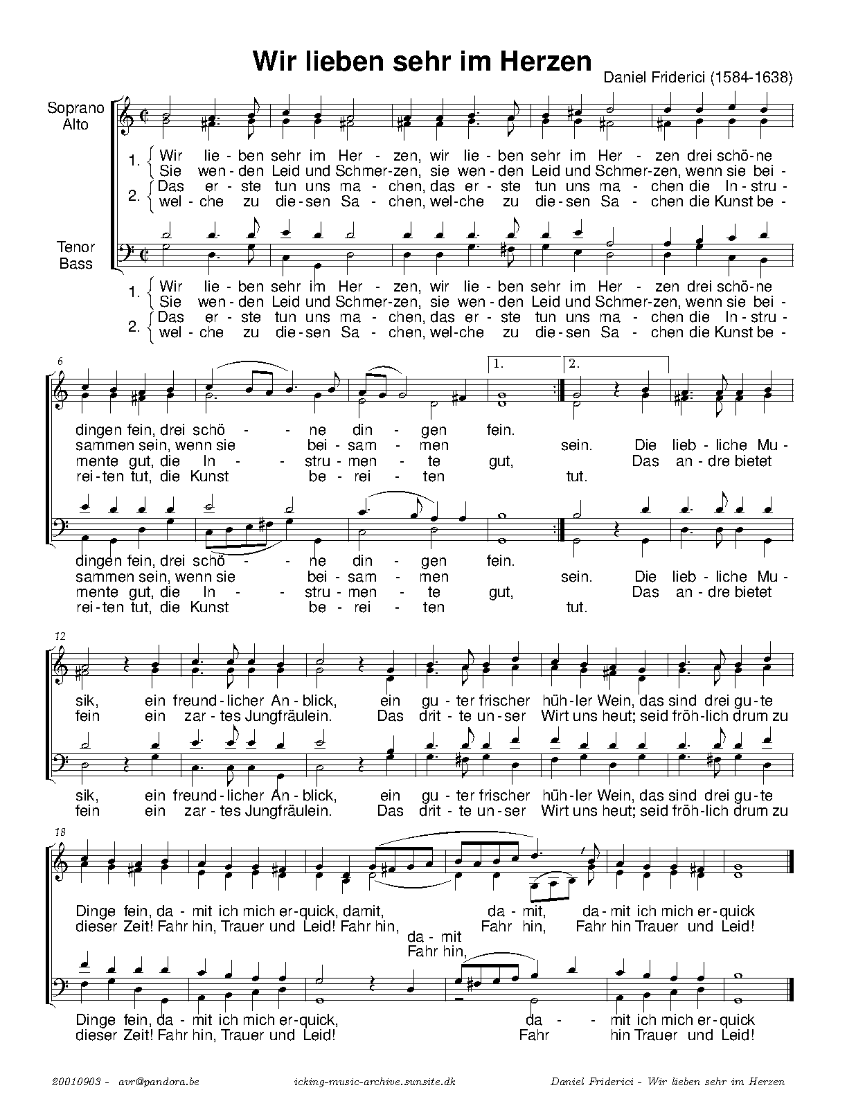 According to one WorldCat entry, this is from Musikalisches Sträußlein (Lübeck 1614), though whether that was the first publication is unknown. According to Grove Music, this had the fuller title Servia musicalis prima, oder Erstes musicalisches Sträusslein and its subsequent part, Servia musicalis altera, oder Anderes musicalisches Sträusslein (1617).