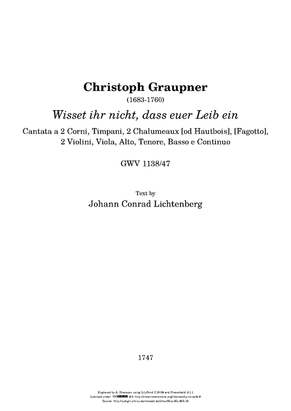 | Opus/Catalogue NumberOp./Cat. No. | GWV 1138/47 |