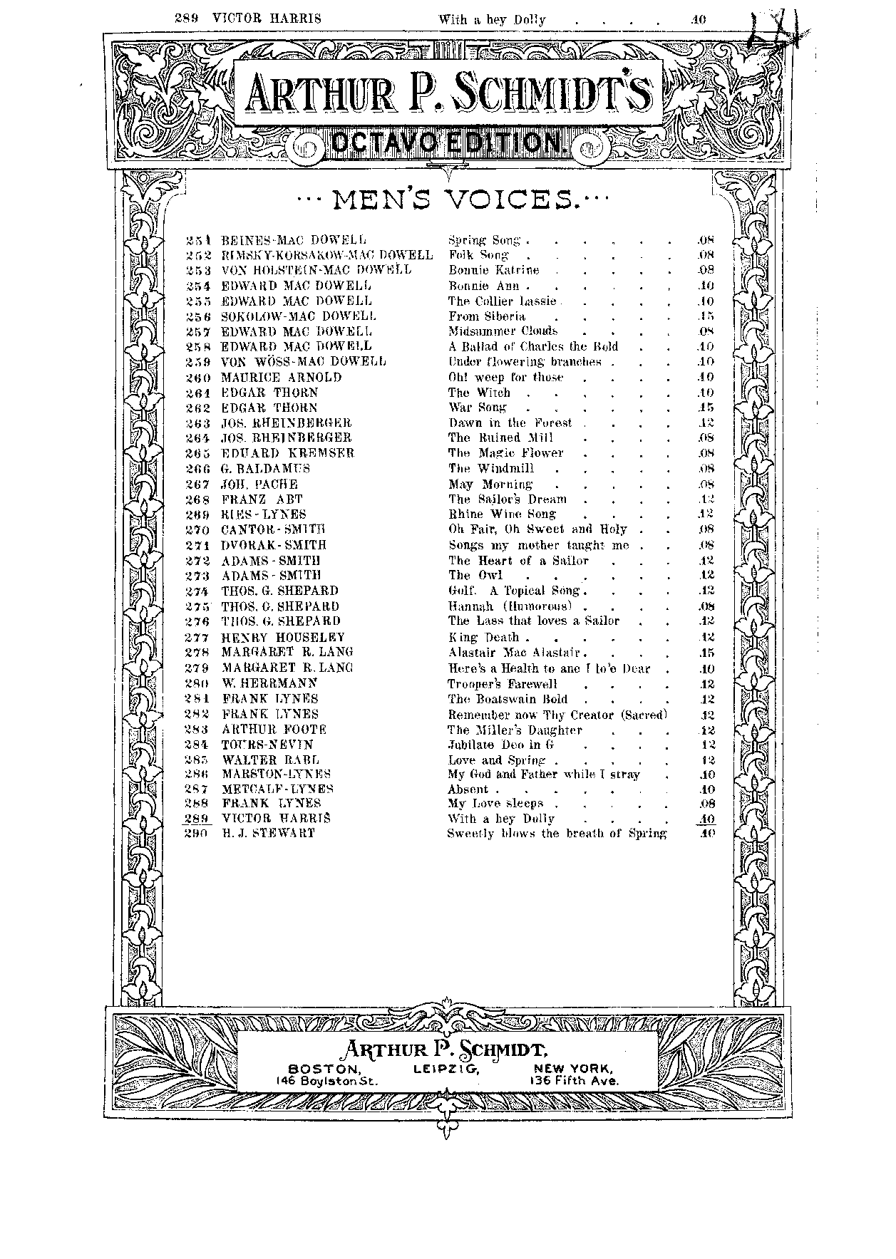 | Genre Categories | Secular choruses; Choruses; For male chorus; |