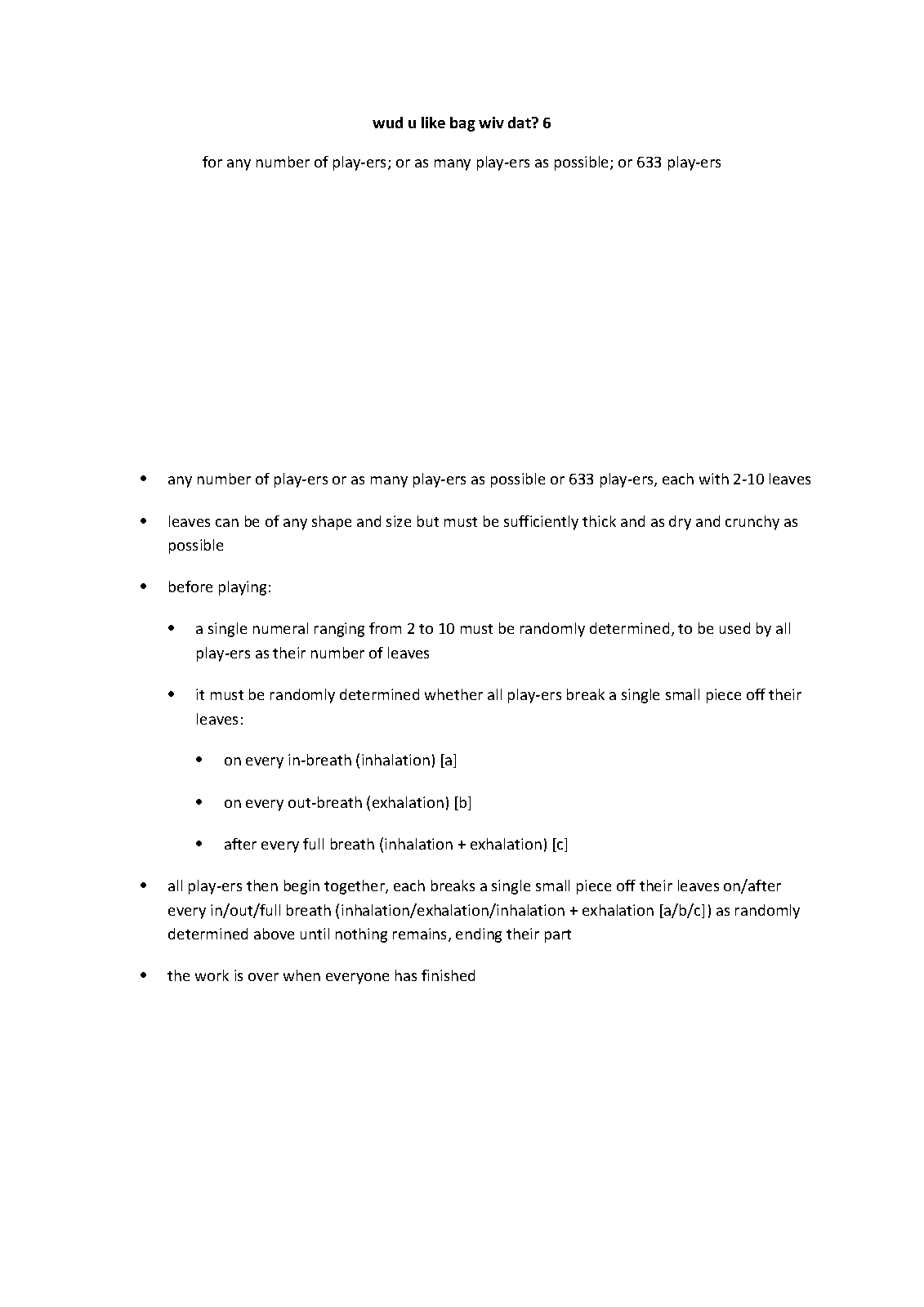 | Instrumentation | any number of play-ers or as many play-ers as possible or 633 play-ers, each with 2-10 leaves |