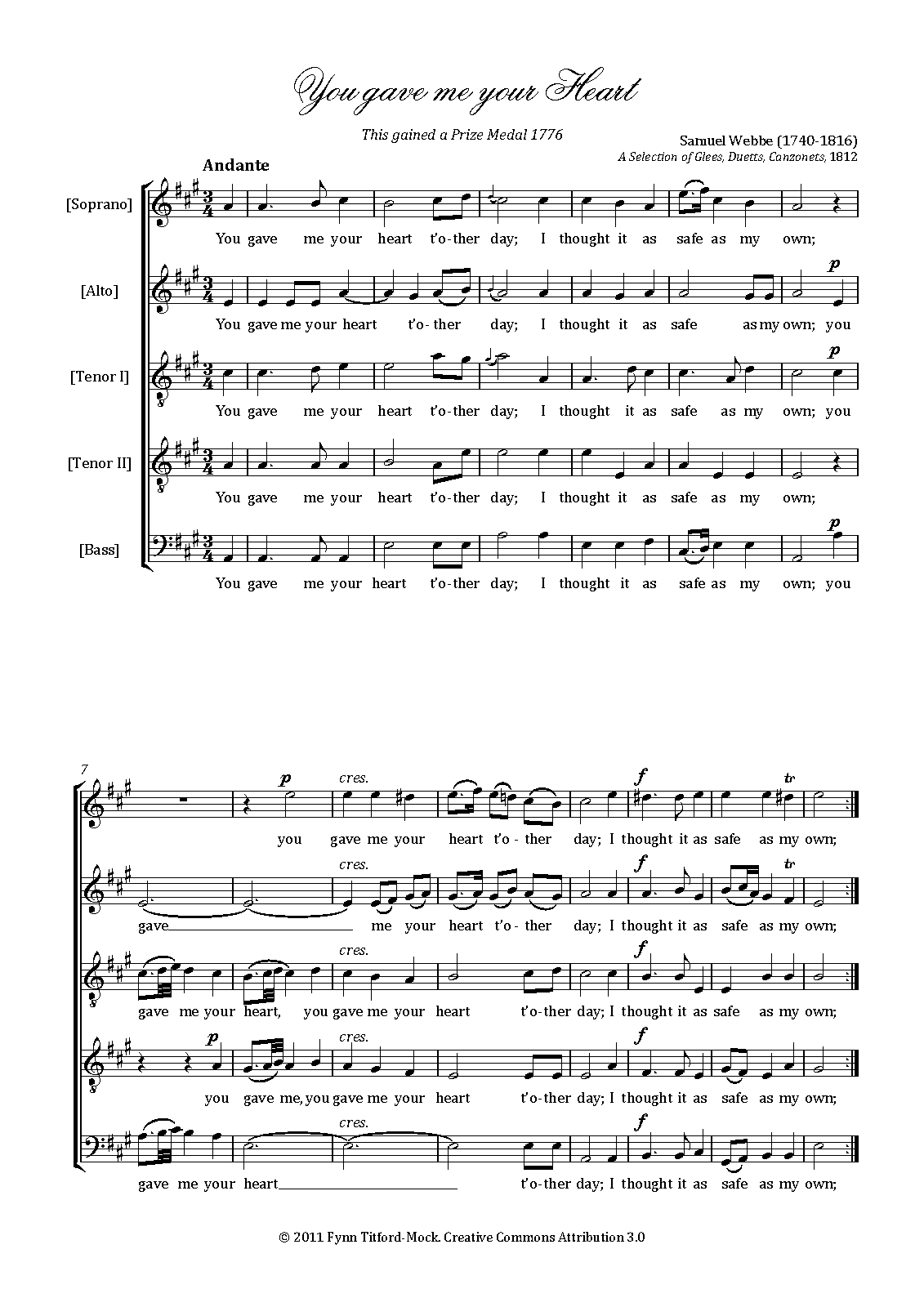 | Genre Categories | Glees; For 5 voices; For unaccompanied voices; |