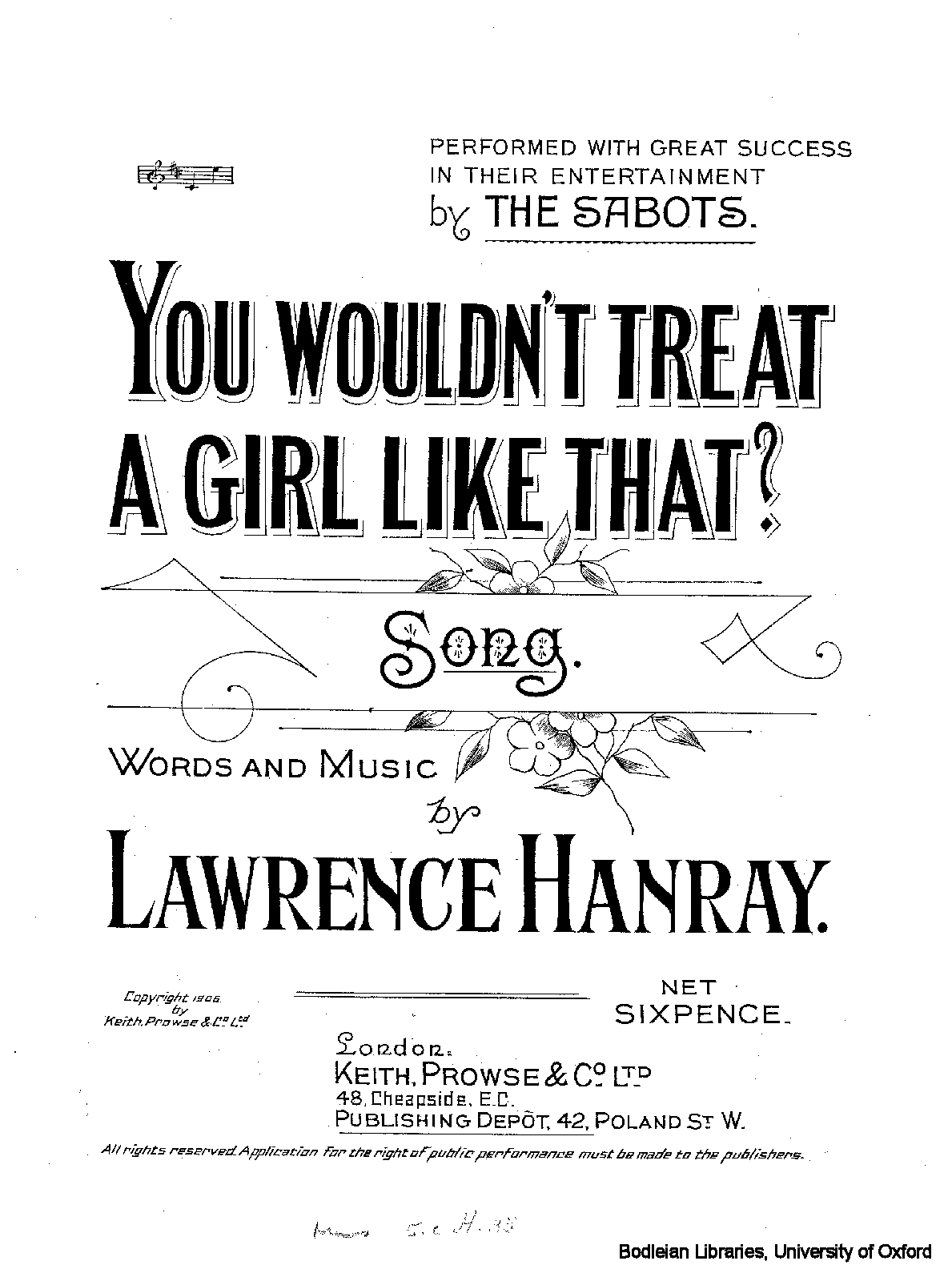 | Work Title | You Wouldn't Treat a Girl Like That? |
