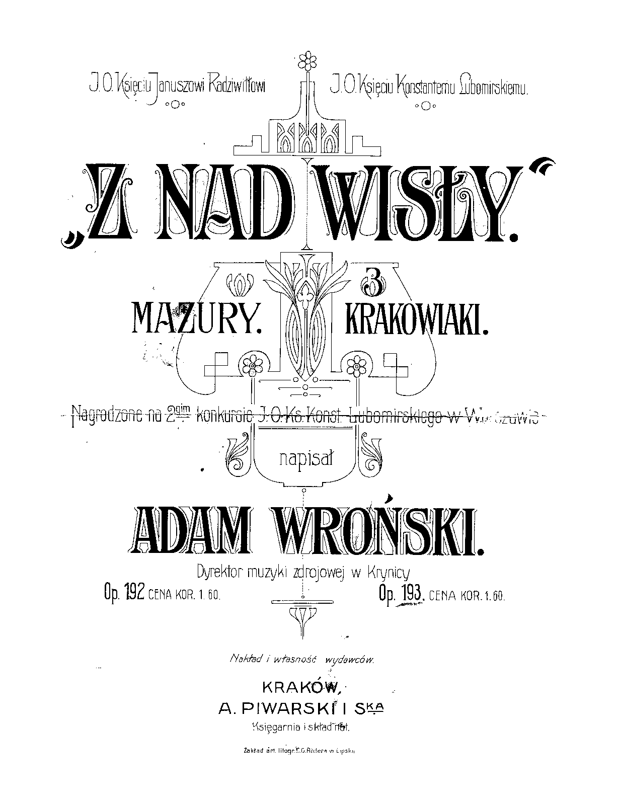 | Dedication | Konstanty Lubomirski (1868–1934) Janusz Radziwiłł |