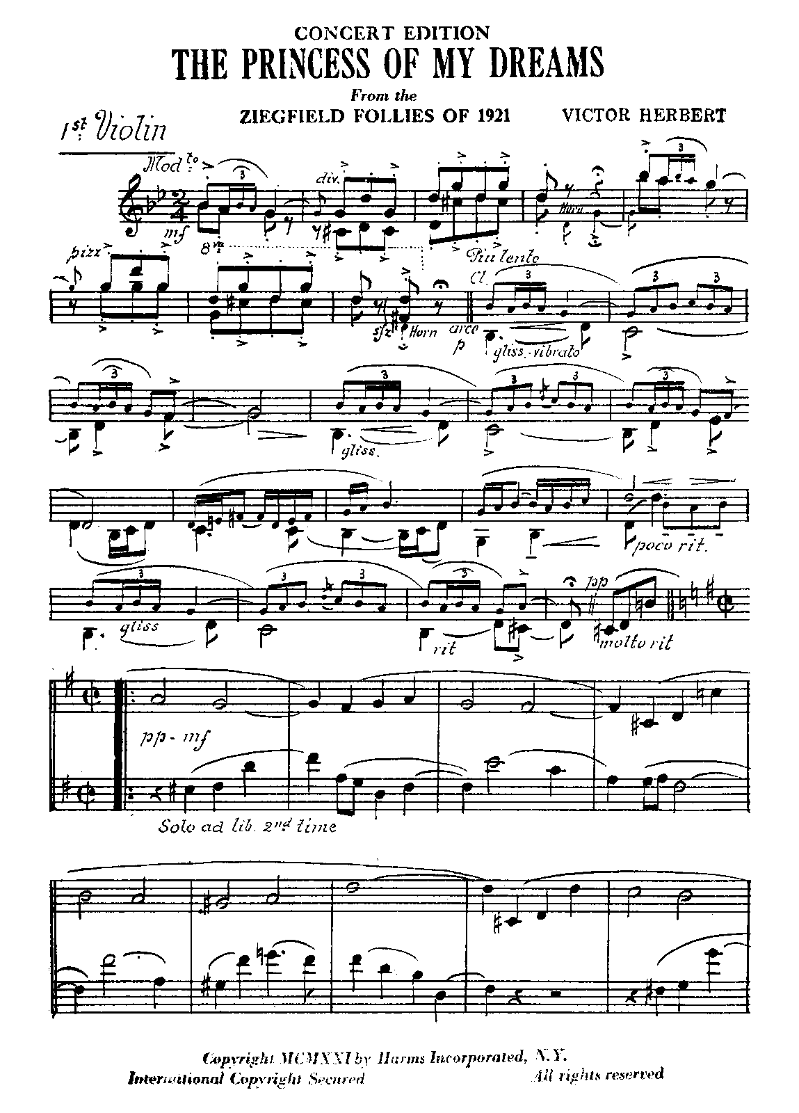 New York: Harms, Inc., 1921.
